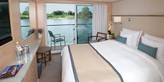 Stateroom size: 275 sq ft (includes private veranda) River-view suite with full-size veranda off a spacious, separate sitting room, and French Balcony (floor-to-ceiling sliding glass door) in sleeping quarters 12 PM Embarkation 12 PM priority stateroom access Queen-size Viking Explorer Bed (optional twin-bed configuration) with luxury linens & pillows Free Wi-Fi (connection speed may vary) Flat-screen TV with infotainment system featuring a selection of live TV channels, complimentary Movies On Demand and in-house programming Additional flat-screen TV in sitting area 110/220 volt outlets & USB ports Large private bathroom with spacious glass-enclosed shower, heated floor, anti-fog mirror & hair dryer Premium Freyja® toiletries Plush robes & slippers Telephone, safe, refrigerator Individual climate control Bottled water replenished daily Welcome champagne; mini-bar with wine, beer & soft drinks (replenished daily); daily fruit plate Binoculars Stateroom steward & twice-daily housekeeping Complimentary laundry & shoe shine services Under-bed suitcase storage space Roomy wardrobe with wooden hangers Complimentary Viking Air Plus (US & CA only) View the Veranda Suite (AA) in our 360° Tour